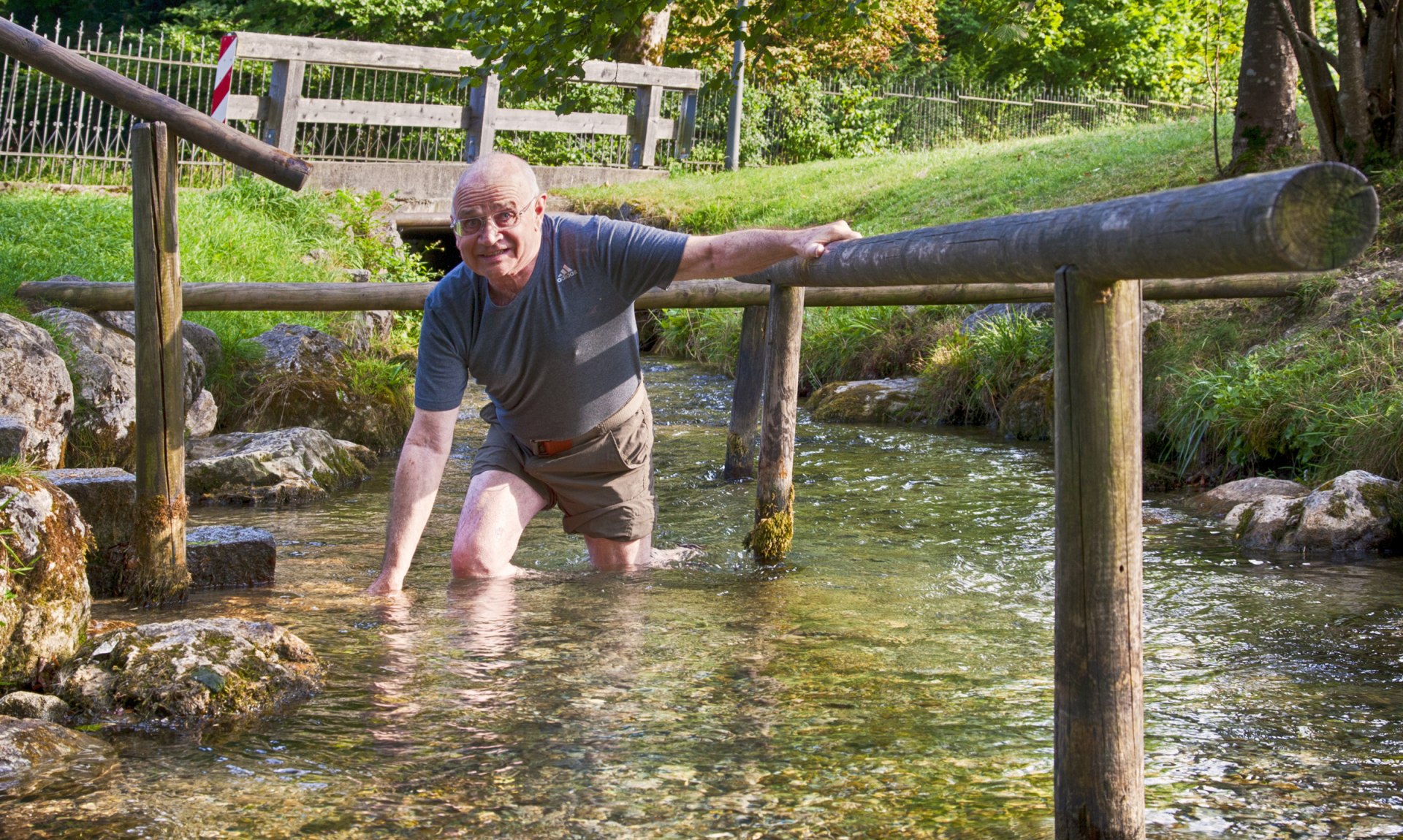 Am Eingang vom Moorbadeplatz befindet sich eine der schönsten Kneippanlagen in Aschau mit einem Wasserrad und Armtauchbecken.